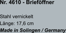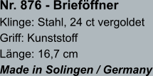 • Brieföffnerklingen