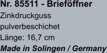 B&S BRIEFÖFFNER zurück zurück